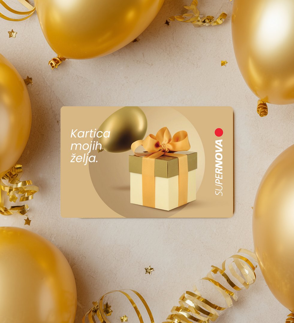 The Supernova Gift Card is the perfect present for any occasion – be it a small surprise or a celebration of life’s big moments. Choose from a range of attractive designs, top up with any amount between 10 and 300 €, and gift the joy of carefree shopping in over 700 stores, bars and restaurants across Supernova shopping centres in Slovenia.